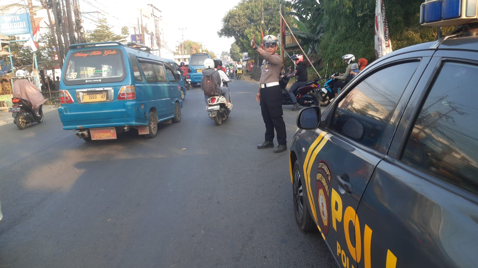 Polres Bogor, Kanit Lantas Polsek Citeureup Polres Bogor Polda Jabar Akp Budi Santoso, S.H dan Tim, Kasihumas Polsek Aiptu Romelah mewakili Kapolsek serta Dishub Kab.Bogor telah melaksanakan tugas Pelayanan Publik melalui Pengaturan Lalu Lintas serta Antisipasi Pengguna motor yang melawan arus lalulintas serta kemacetan di beberapa ruas jalan, pada hari Jum’at (18/08/2023).