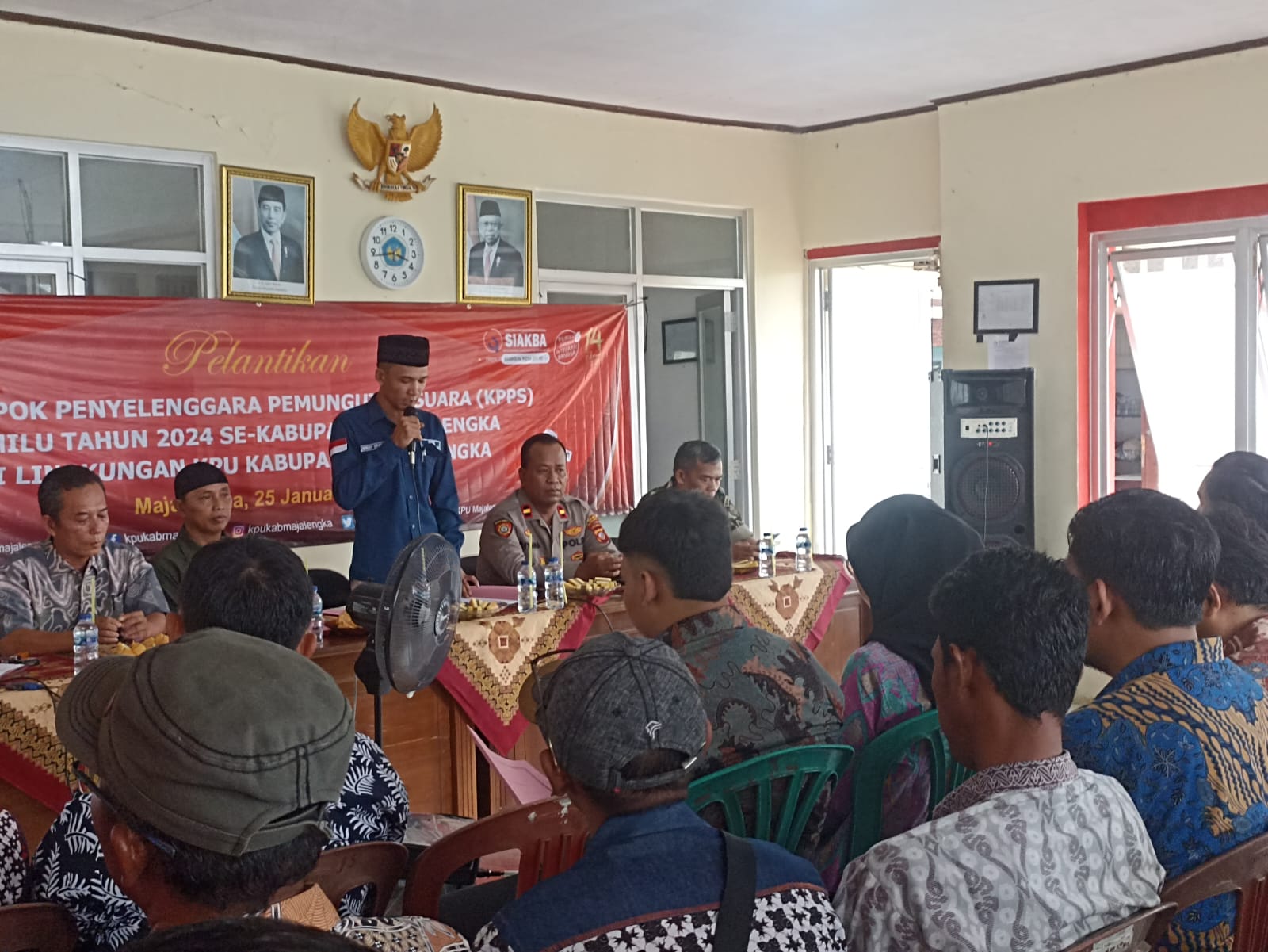 Kapolres Majalengka AKBP Indra Novianto,S.I.K.,M.Si.,CPHR., melalui Kapolsek Sukahaji AKP Erik Riskandar mengungkapkan Pelantikan KPPS ini menjadi salah satu langkah persiapan yang penting dalam menjaga kelancaran dan keamanan proses demokrasi di wilayah Kecamatan Sukahaji, Kabupaten Majalengka.