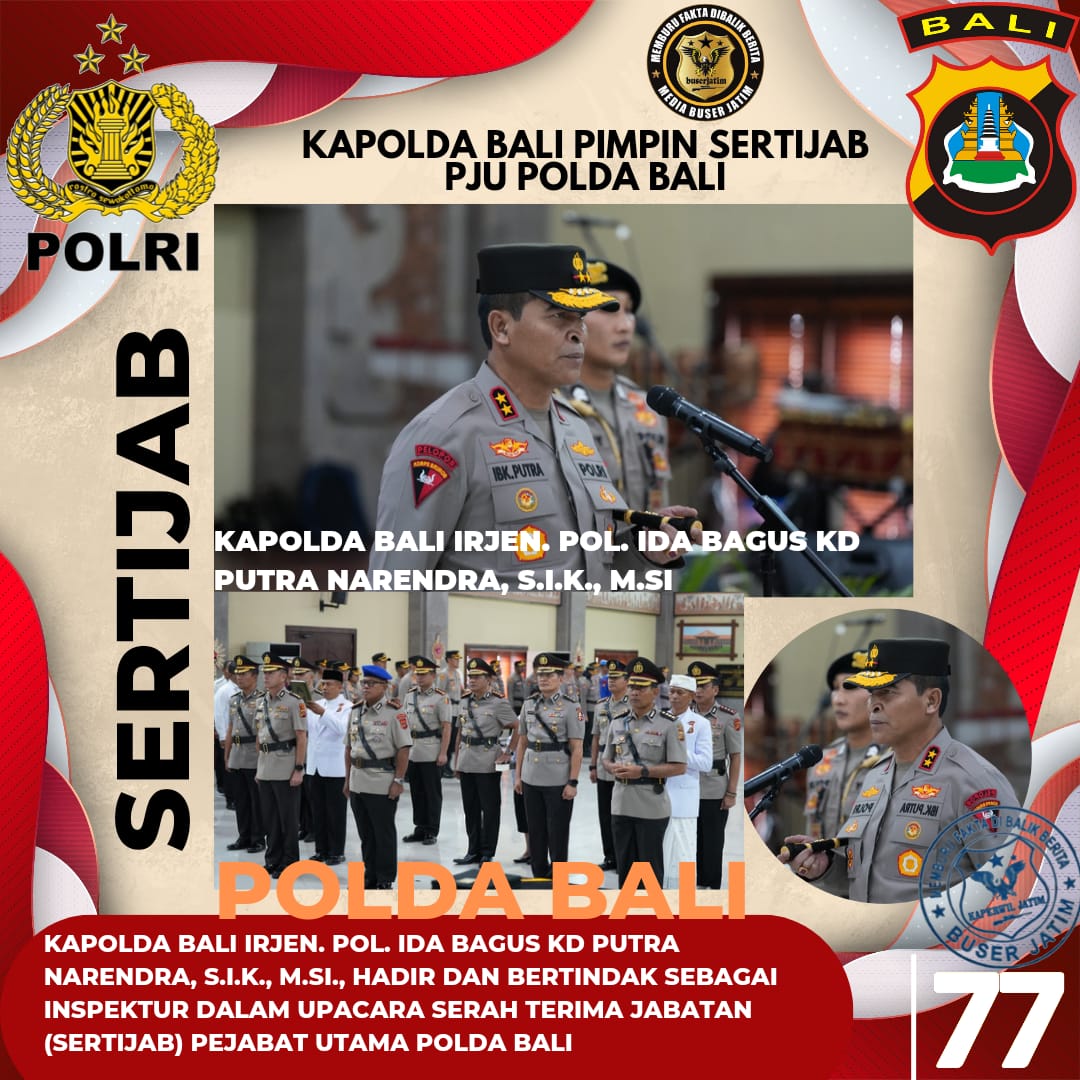 Mutasi jabatan merupakan hal yang biasa terjadi pada Instansi Polri, selain sebagai pembinaan karir, rotasi jabatan juga merupakan bentuk penyegaran pada organisasi Polri. PJU Polda Bali sendiri melaksanakan sertijab 5 jabatan dan 1 pelantikan pejabat.