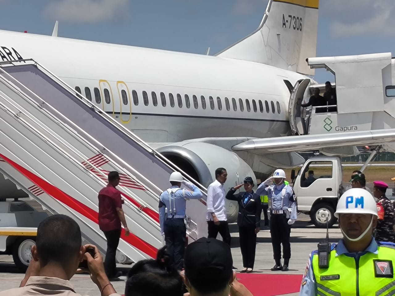 Selain Kapolda, Penjabat (Pj.) Gubernur Bali, Sang Made Mahendra Jaya, Pangdam IX/Udayana Mayjen TNI Harfendi, S.I.P., M.Sc., Danlanud Ngurah Rai Kolonel Pnb Agni Prayogo, S.E. dan Danlatamal V Denpasar, Kolonel Marinir I Dewa Nyoman Gede Rake Susilo, S.E. juga turut menyambut Presiden Jokowi saat tiba di Pulau Dewata.