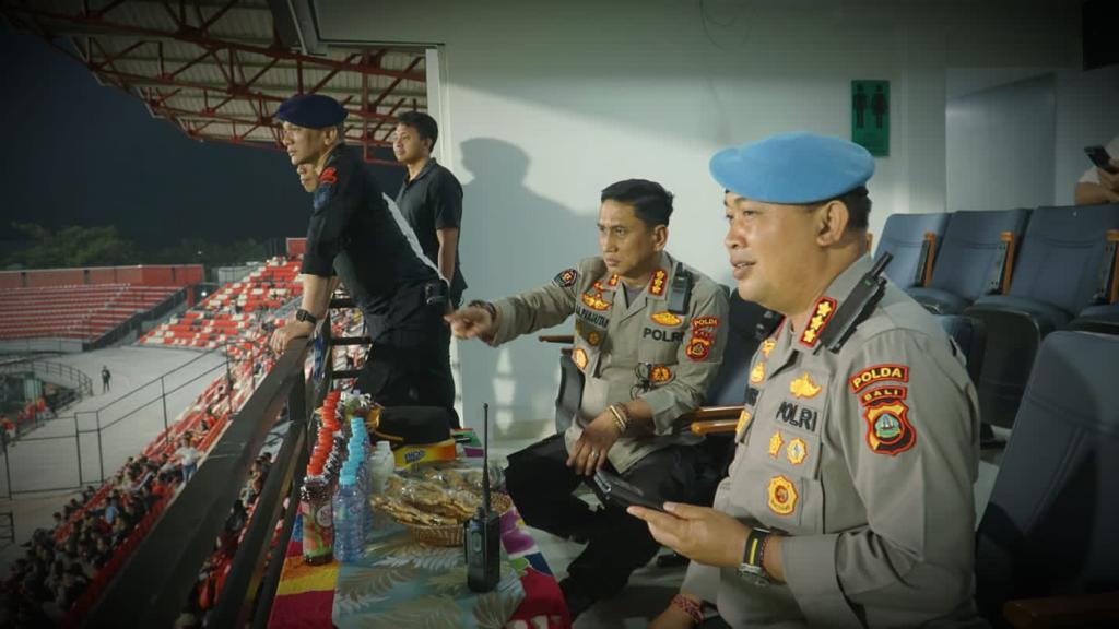 Kepala Kepolisian Daerah Bali, Inspektur Jenderal Polisi Ida Bagus Kade Putra Narendra, S.I.K., M.Si. didampingi para Pejabat Utama (PJU) Polda Bali, tinjau situasi pengamanan Kompetisi BRI Liga 1 (2023/2024) pada pertandingan antara Bali United FC vs Persik Kediri, Senin (7/8/2023) malam, pukul 20.00 Waktu Indonesia Bagian Tengah (WITA).