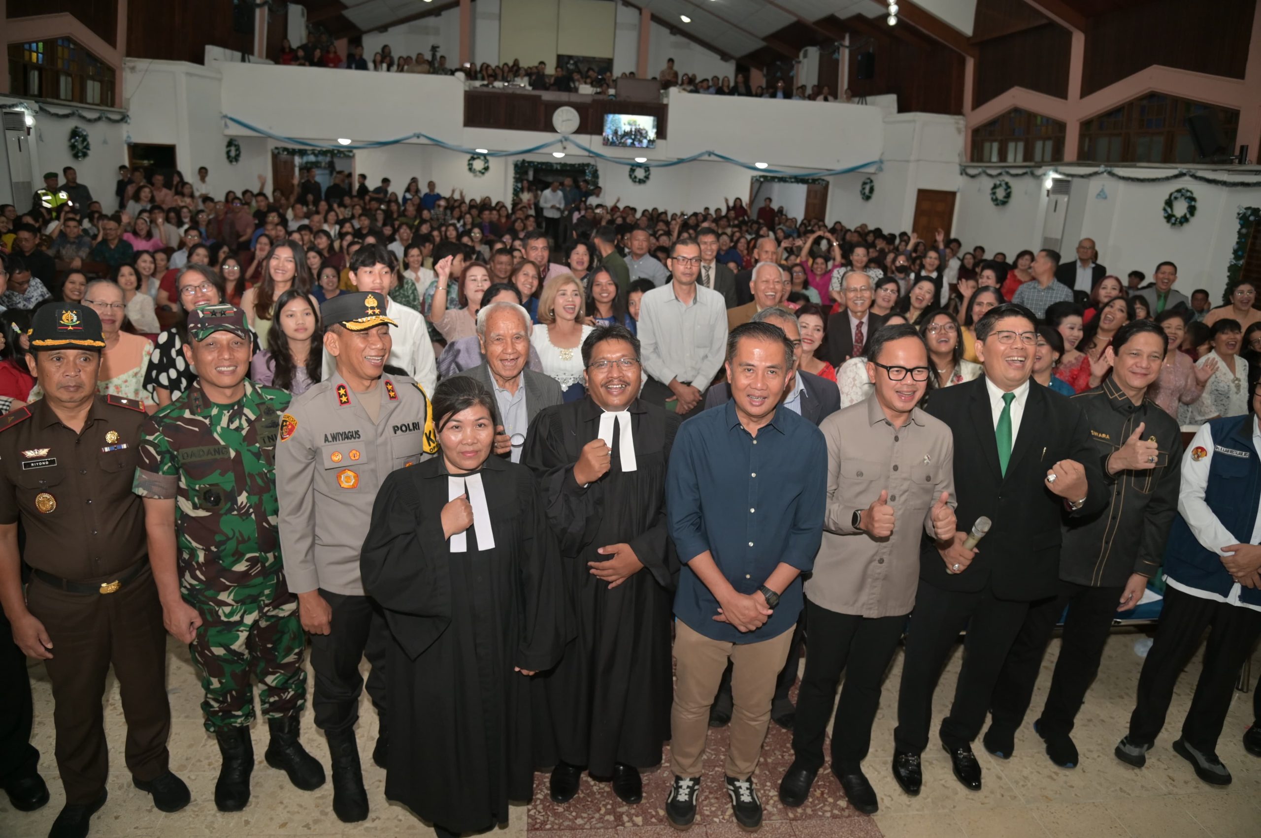 Dalam kesempatan tersebut, Wamendagri bersama rombongan memberikan apresiasi atas sinergi yang kuat antara aparat keamanan dan pemerintah daerah dalam menjaga suasana damai selama perayaan Natal.
