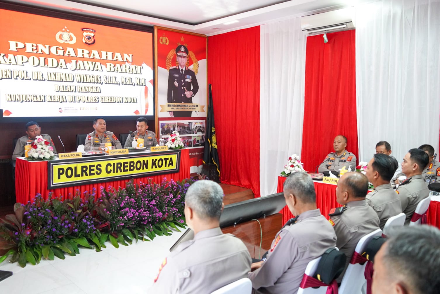 Selepas mendapatkan laporan dari Kapolres Cirebon Kota, Kapolda Jabar IRJEN POL Dr. AKHMAD WIYAGUS, S.I.K., M.Si., M.M memberikan arahan “Terimakasih kepada Forkopimda Plus dan tamu undangan lainnya yang sudah hadir dalam kegiatan silaturahmi ini.