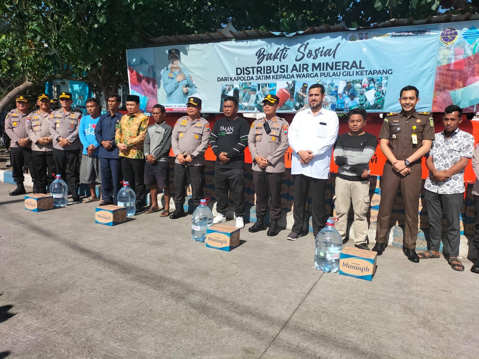 PROBOLINGGO, BUSERJATIM.COM – Polda Jatim menggelontokan bantuan air mineral untuk warga Gili Ketapang, Kecamatan Sumberasih, Kabupaten Probolinggo, Rabu (11/1/2023).