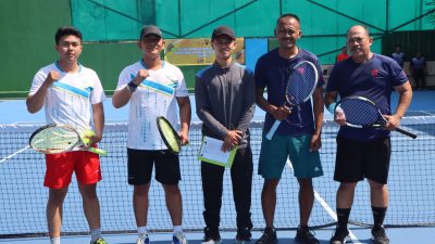 Kepala Kepolisian Resor Badung AKBP Teguh Priyo Wasono, SIK tampil semangat dan bergairah saat mengambil bagian dalam turnamen tenis lapangan, Kapolda Cup tahun 2023 di lapangan Tenis Bhayangkara Presisi Polda Bali, Tohpati Denpasar, Bali. Jumat, (29/9/2023) pukul 10.00 WITA.