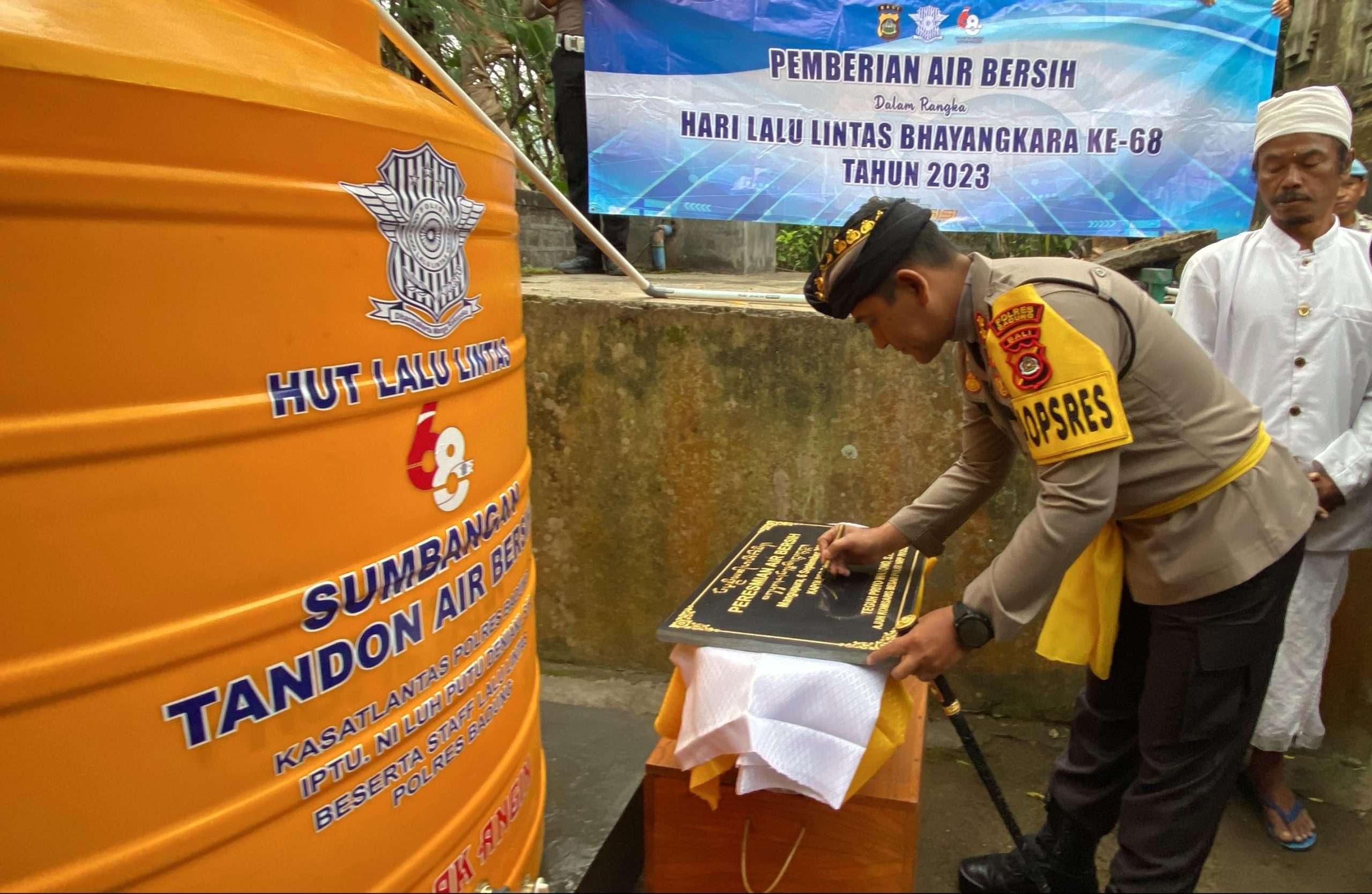 Dalam rangka memperingati Hari Ulang Tahun (HUT)  Lalulintas ke 68 tahun 2023, Kepala Kepolisian Resor Badung AKBP Teguh Priyo Wasono, SIK menyerahkaan bantuan Tandon/ Bak Air Minum isian 1800 liter di Pura Penataran Pucak Mangu, Br.Tinggan, Desa Pelaga, Kecamatan Petang, Kabupaten Badung, Bali. Rabu, (6/9/2023) pagi 08.25 WITA.