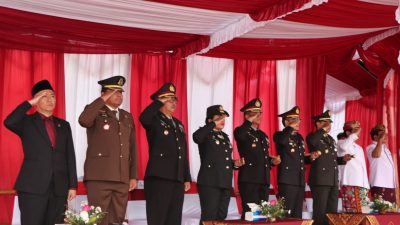 Kepala Kepolisian Resor Badung AKBP Teguh Priyo Wasono, SIK. menghadiri Upacara Penurunan Bendera Sang Merah Putih dalam rangka peringatan HUT Kemerdekaan Republik Indonesia ke -78 dengan tema “Terus Melaju Untuk Indonesia Maju” di lapangan Mangupraja Mandala pusat pemerintahan Kabupten Badung, Kelurahan Sempidi Kecamatan Mengwi, Kabupaten Badung, Kamis (17/8/2023) pada pukul 17.00 wita.