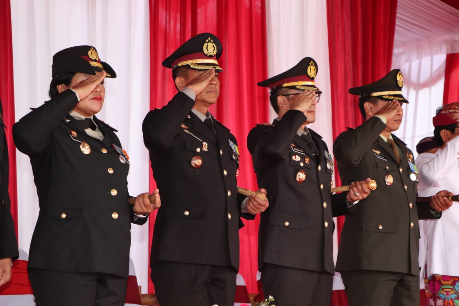 “Alhamdulillah upacara penurunan Bendera Sang Merah Putih berlangsung dengan aman dan lancar.” Ungkap Kapolres AKBP Teguh Priyo Wasono, S.I.K. (18/8).