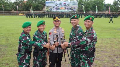 Kepala Kepolisian Resor Badung AKBP Teguh Priyo Wasono, SIK hadiri Upacara Penyerahan Simbol, Pemberangkatan Peleton Beranting Yudha Wastu Pramuka Jaya TA 2023 wilayah KodamIX/Udayana TA 2023 di lapangan Umum Mengwi, Desa Mengwi, Kecamatan Mengwi, Kabupaten Badung, Bali. Sabtu, (16/12/2023) pagi 07.00 WITA. Upacara ini dalam rangka Hari Juang Infantri ke-75 yang dipimpin langsung Pangdam IX Udayana Mayjen TNI Harfendi S.I.P, M.Sc.
