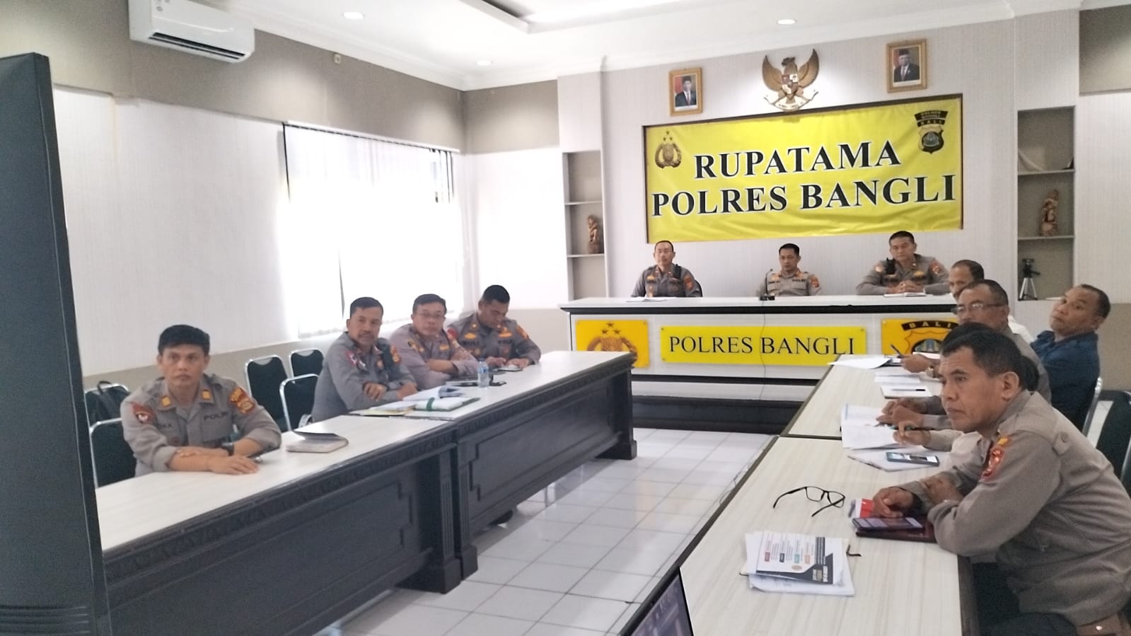 Hadir di Rupatama Polres Bangli dipimpin Kapolres Bangli AKBP I DEWA AGUNG ROY MARANTIKA, S.H., S.I.K didampingi Wakapolres Bangli KOMPOL I NYOMAN GATRA, S.H., M.H, Kabag Ren Polres Bangli KOMPOL I NYOMAN SUDIASA, S.H., Para PJU Polres Bangli dan Kapolsek jajaran Polres Bangli.