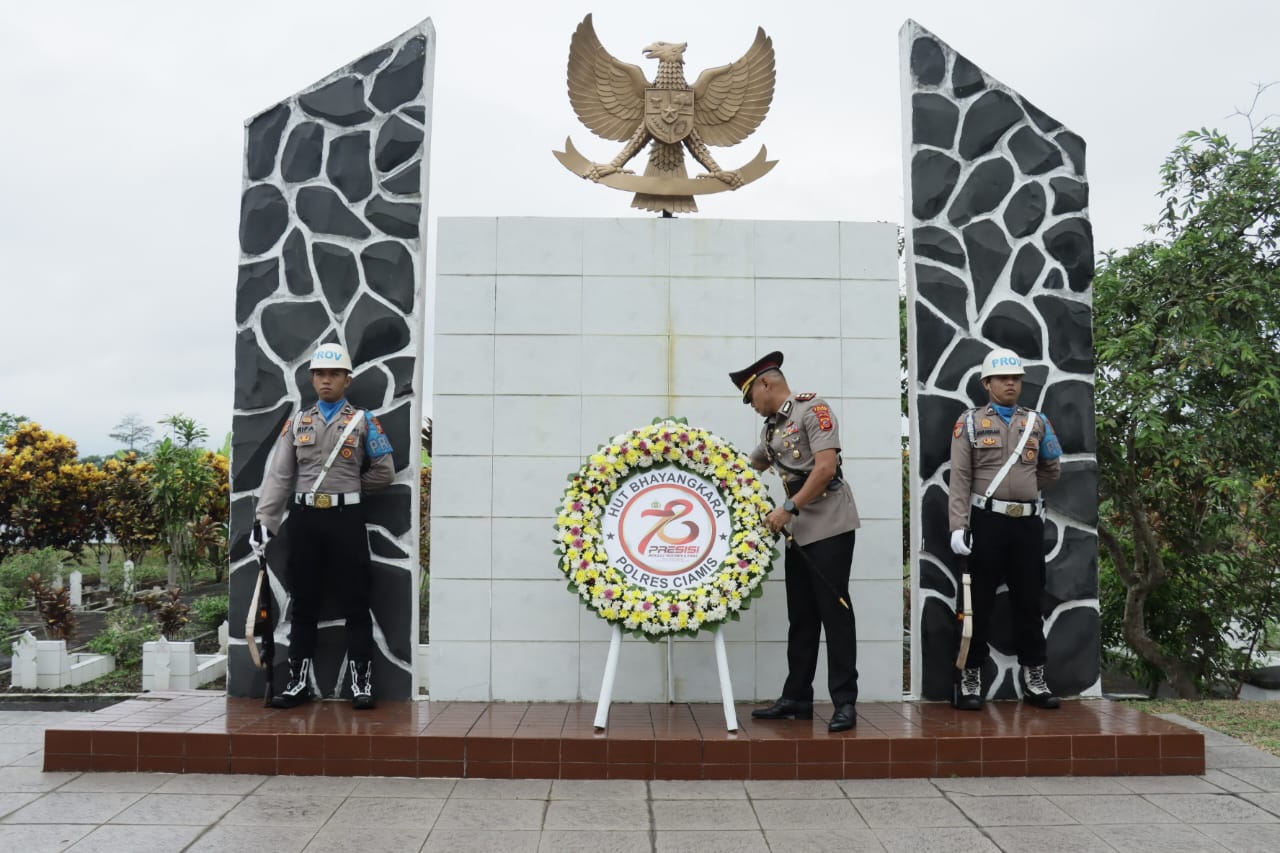 Ziarah makam ini dipimpin langsung oleh Kapolres Ciamis Polda Jabar AKBP Akmal SH., S.I.K., M.H., dan diikuti oleh para Pejabat Utama Polres Ciamis Polda Jabar dan puluhan personel Polri. Turut serta mengikuti Ketua Bhayangkari Cabang Ciamis beserta pengurus.