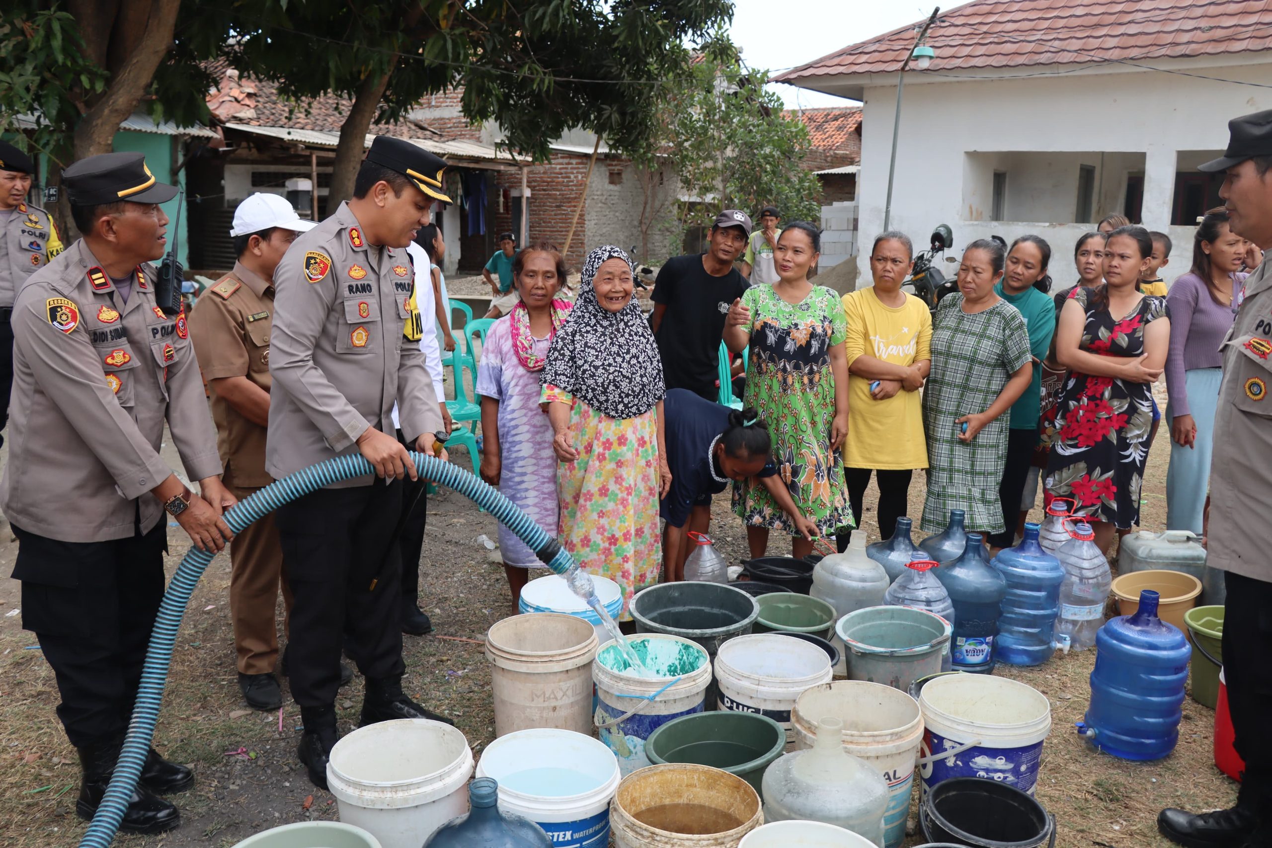 “Warga Desa Banjarwangunan di lima RW mengalami kesulitan air bersih karena sumur-sumur mengalami kekeringan akibat kemarau panjang,” jelas AKBP Muhammad Rano Hadiyanto.
