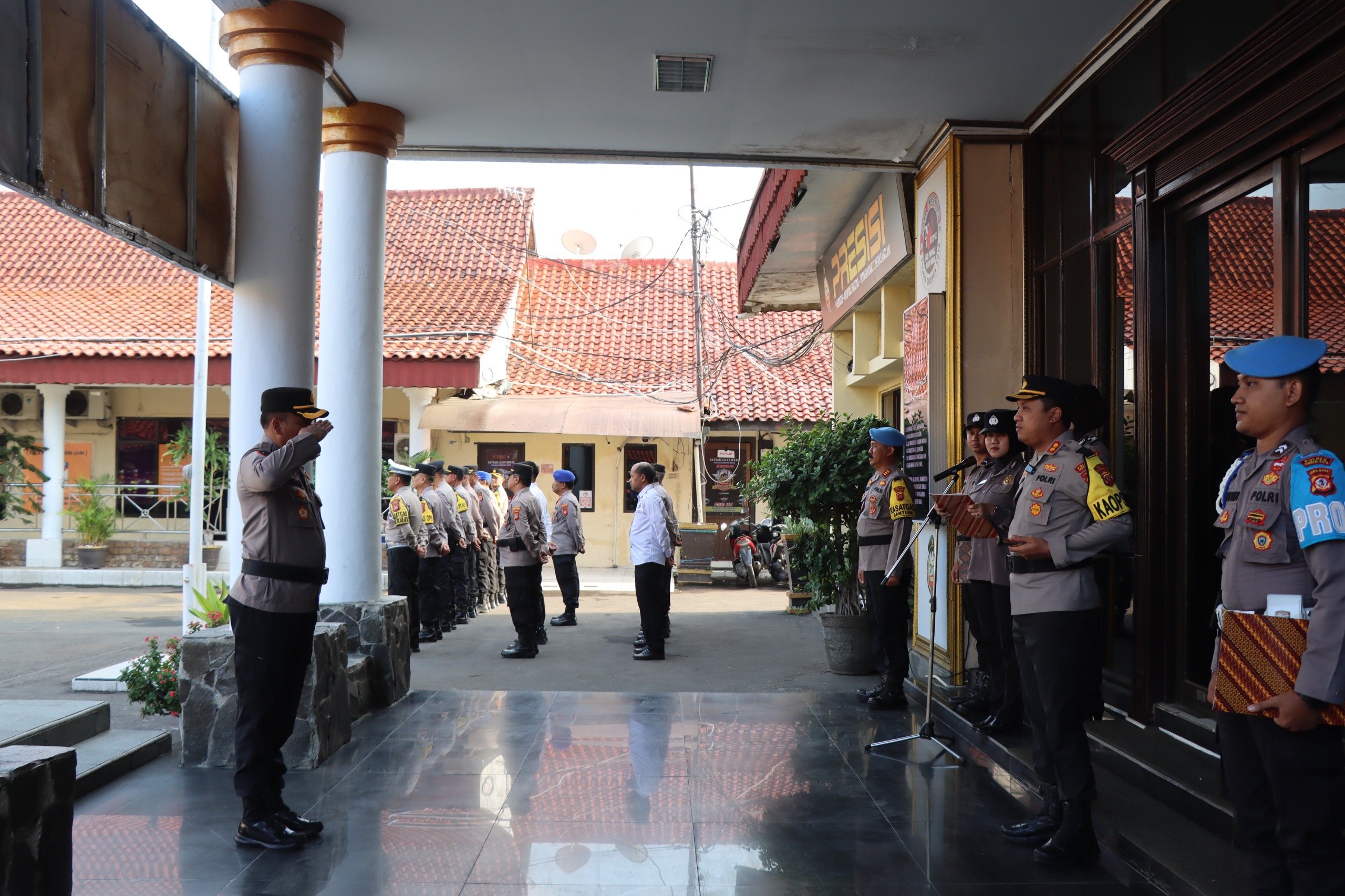POLRES CIREBON KOTA,-Kepolisian Resor (Polres) Cirebon Kota menggelar upacara penerimaan peserta latihan kerja (Latja) Taruna/i Akademi Kepolisian (Akpol) Tingkat III Angkatan 56 Batalyon Presisi.