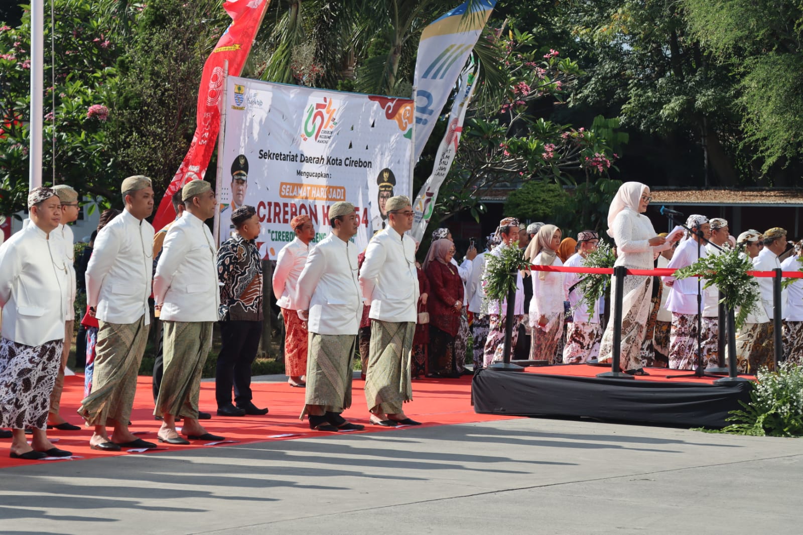 Upacara peringatan Hari Jadi Kota Cirebon ke-654 dipimpin oleh Wakil Wali Kota Cirebon Hj. Dra. Eti Herawati.