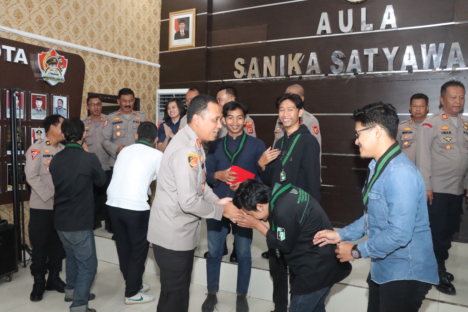 POLRES CIREBON KOTA,-Kapolres Cirebon Kota AKBP M. Rano Hadiyanto S.Ik.,M.M di damping Wakapolres Cirebon Kota Kompol Ahmat Troy Aprio S.H.,S.Ik beserta PJU dan Perwira menyambut dan menerima kunjungan silaturahmi dan audiensi dari Pengurus Cabang HMI (Himpunan Mahasiswa Islam) Cabang Cirebon Periode 2023-2024.