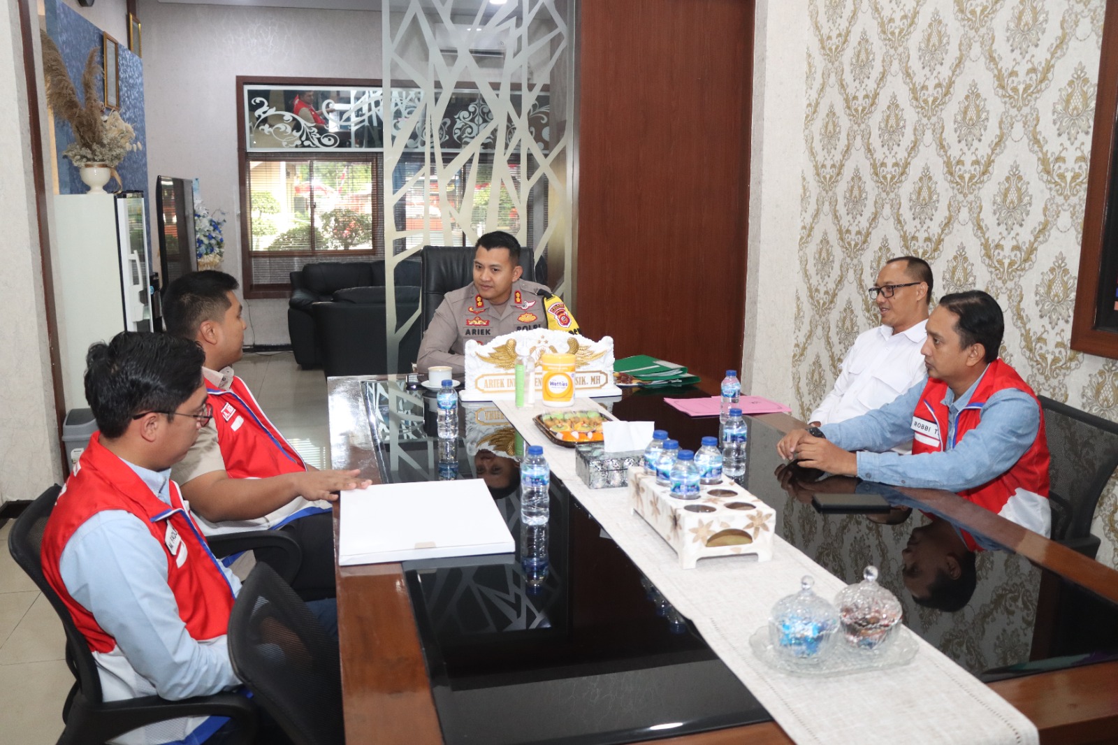 Kapolres Cirebon Kota Akbp Ariek Indra Sentanu S.H.,S.IK.,M.H menyampaikan “Ucapan terima kasih kepada Kepala Bulog Cirebon dan Up Pertamina sudah berkunjung silaturahmi ke Polres Cirebon Kota,semoga Polres Cirebon Kota dengan Bulog dan Up Pertamina tetap menjalin hubungan baik dan tetap bersinergi dalam menciptakan situasi Kamtibmas yang kondusif.” Ujarnya