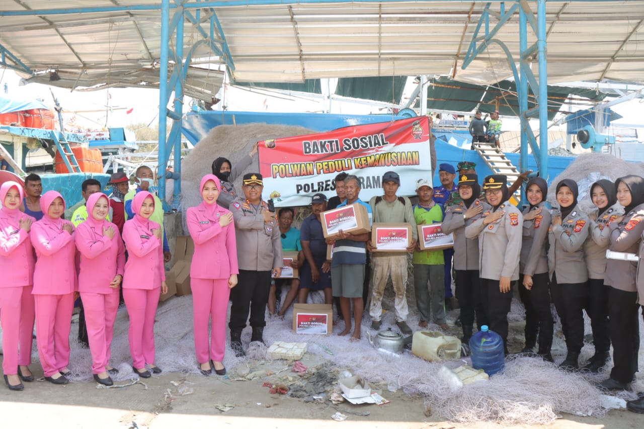 Kapolres Indramayu dan Ny. Ketty Fahri secara langsung turut ambil bagian dalam pembagian 100 paket sembako kepada masyarakat dan nelayan yang membutuhkan di wilayah tersebut.