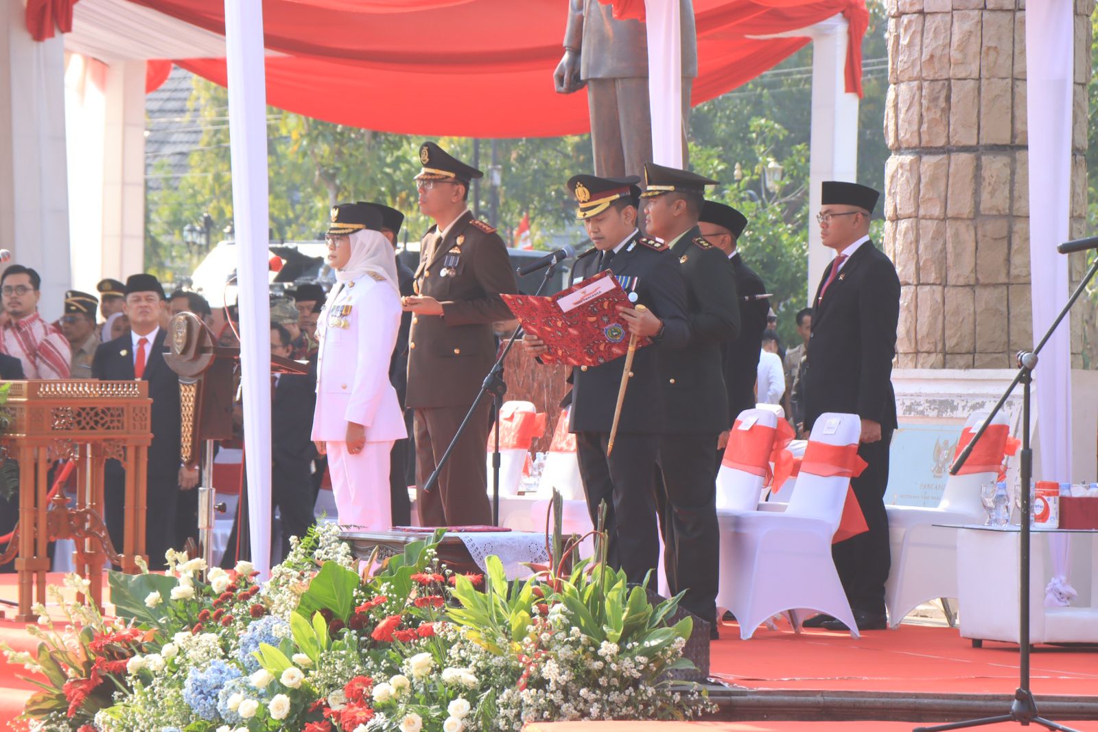 Upacara ini dipimpin oleh Bupati Indramayu Hj. Nina Agustina, S.H., M.H., C.R.A., yang bertindak sebagai Inspektur Upacara.