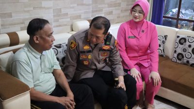 BUSERJATIM.COM || KARANGASEM BALI – Polda Bali – Polres Karangasem, Sebagai rangkaian kegiatan memperingati Hari Bhayangkara ke-77, pada hari Jumat (16/6/2023), Kapolres Karangasem AKBP Ricko A. A. Taruna, S.H., S.I.K., M.H., M.M., Wakapolres Karangasem Kompol Fachmi Hamdani., S.I.K., S.Psi, Ketua Bhayangkari Cabang Karangasem Ny. Eisha Ricko Taruna beserta para PJU Polres Karangasem, Bhayangkari Cabang Karangasem dan Bhabinkamtibmas Kelurahan Padangkerta melaksanakan anjangsana di rumah personil Polsek Karangasem AIPTU I Made Ngurah Astawa, yang beralamat di Perumnas Paye, Jln. Anggrek Raya, Lingkungan Kertasari, Kel. Padangkerta, Kec./Kab. Karangasem yang bersangkutan dijenguk Kapolres karena mengalami sakit Struk.