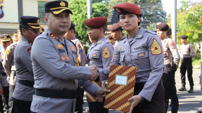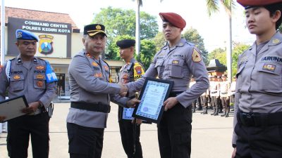 BUSERJATIM.COM || KEDIRI KOTA – Kapolres Kediri Kota AKBP Teddy Chandra, S.I.K., M.Si. pimpin Upacara Pemberian Penghargaan kepada 15 (Lima Belas) Personil Polri dan 12 (dua belas) Taruna Akpol Tk lV angkatan 55 Batalyon “Satya Darma”, yang berprestasi.