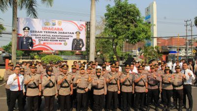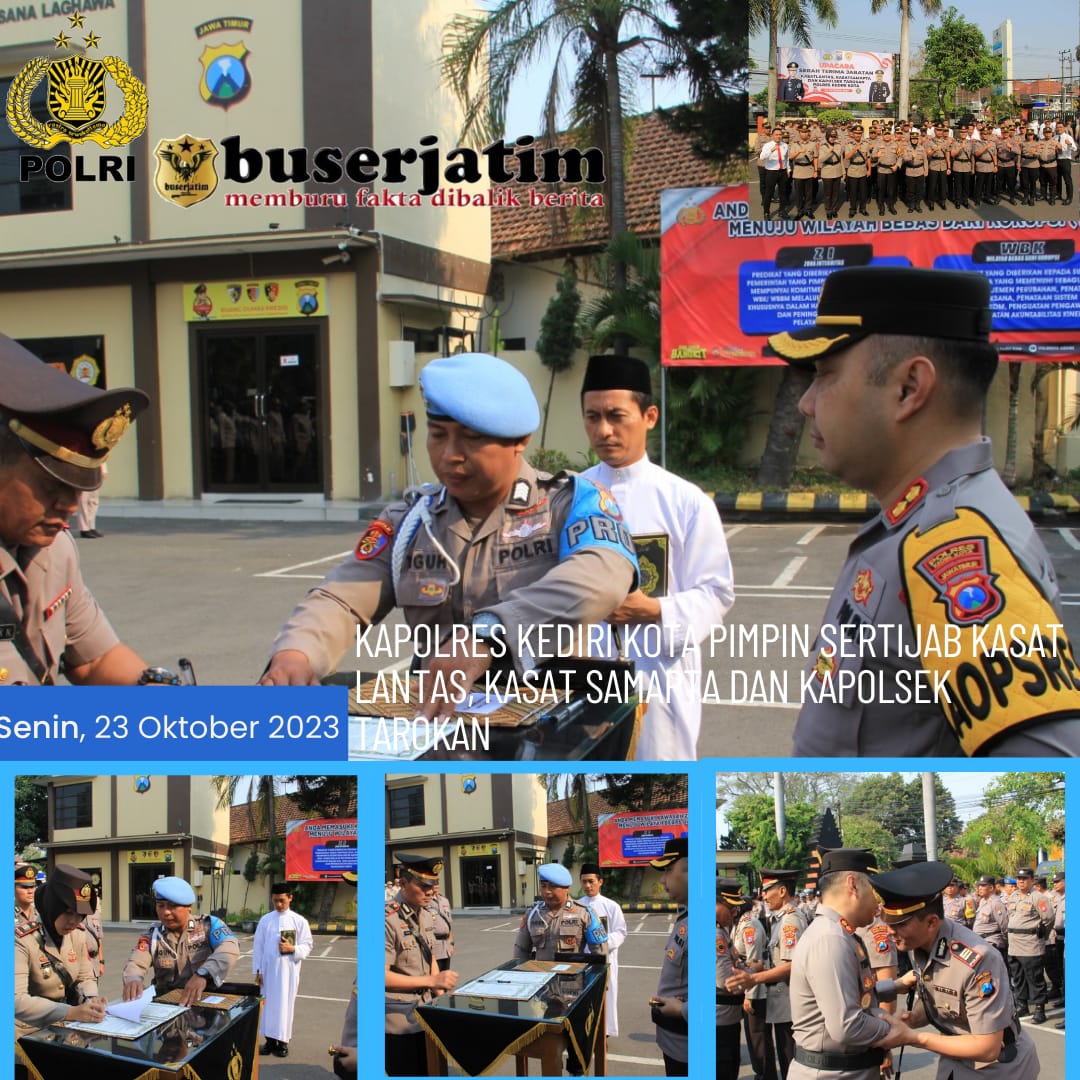 BUSERJATIM.COM || KOTA KEDIRI – Polres Kediri Kota menggelar serah terima jabatan Kasat Lantas, Kasat Samapta dan Kapolsek Tarokan, Senin (23/10). Kegiatan digelar di halaman Mapolres Kediri Kota Jl KDP Slamet 02 Kota Kediri.