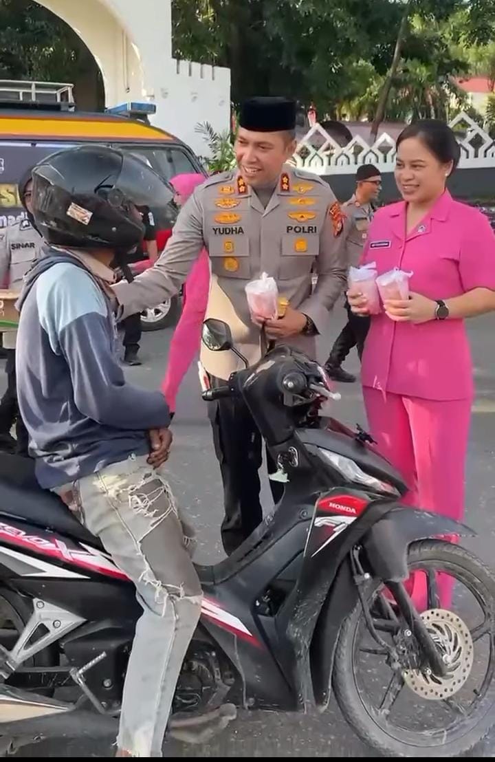 Dalam rangka mengisi bulan suci ini dengan amalan kebaikan, Kapolres Kolaka AKBP Yudha Widyatama Nugraha, S.I.K., M.H., CPM. bersama Ibu Bhayangkari Cabang Kolaka menggelar bakti sosial berupa pembagian takjil gratis bagi masyarakat yang menjalankan ibadah puasa.
