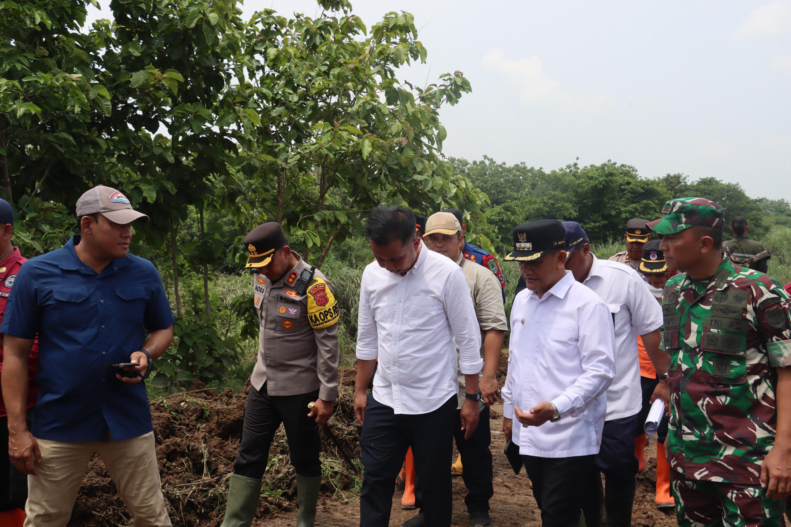 MAJALENGKA – Kapolres Majalengka, AKBP Indra Novianto, S.I.K., M.Si., CPHR, bersama Forkopimda Kabupaten Majalengka, mendampingi Penjabat (PJ) Gubernur Jawa Barat, Bey Machmudin, dalam melakukan pengecekan tanggul saluran air di Desa Pakubeureum, Kecamatan Kertajati, Kabupaten Majalengka, pada Selasa (13/2/2024).
