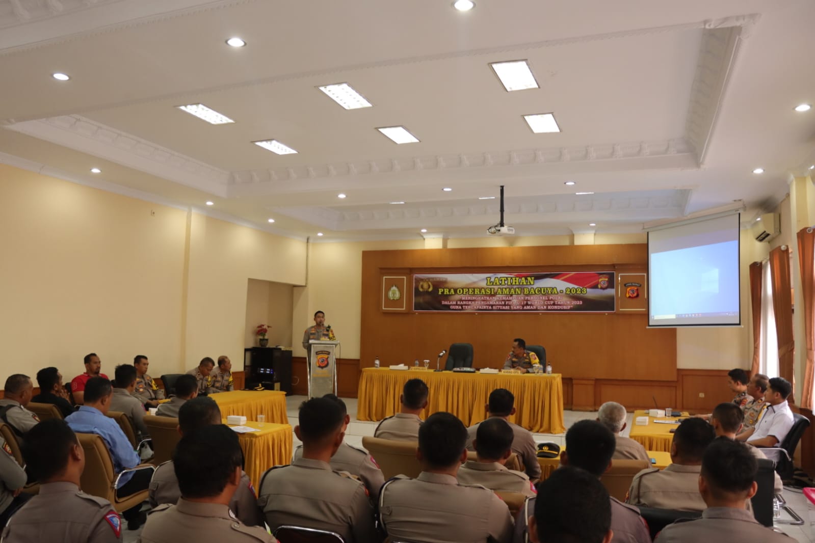 Turut hadir dalam acara tersebut Pejabat Utama Polres Majalengka, para perwira, dan peserta latihan Operasi “Aman Bacuya Lodaya 2023”. Dalam sambutannya, Kapolres Majalengka AKBP Indra Novianto, S.I.K., M.Si., CPHR menyambut baik kegiatan latihan pra operasi ini sebagai bagian dari fungsi manajemen operasi kepolisian yang rutin dilaksanakan sebelum pelaksanaan operasi. Hal ini bertujuan untuk mempersiapkan strategi dalam menghadapi berbagai permasalahan dan tantangan tugas dalam pelaksanaan operasi.