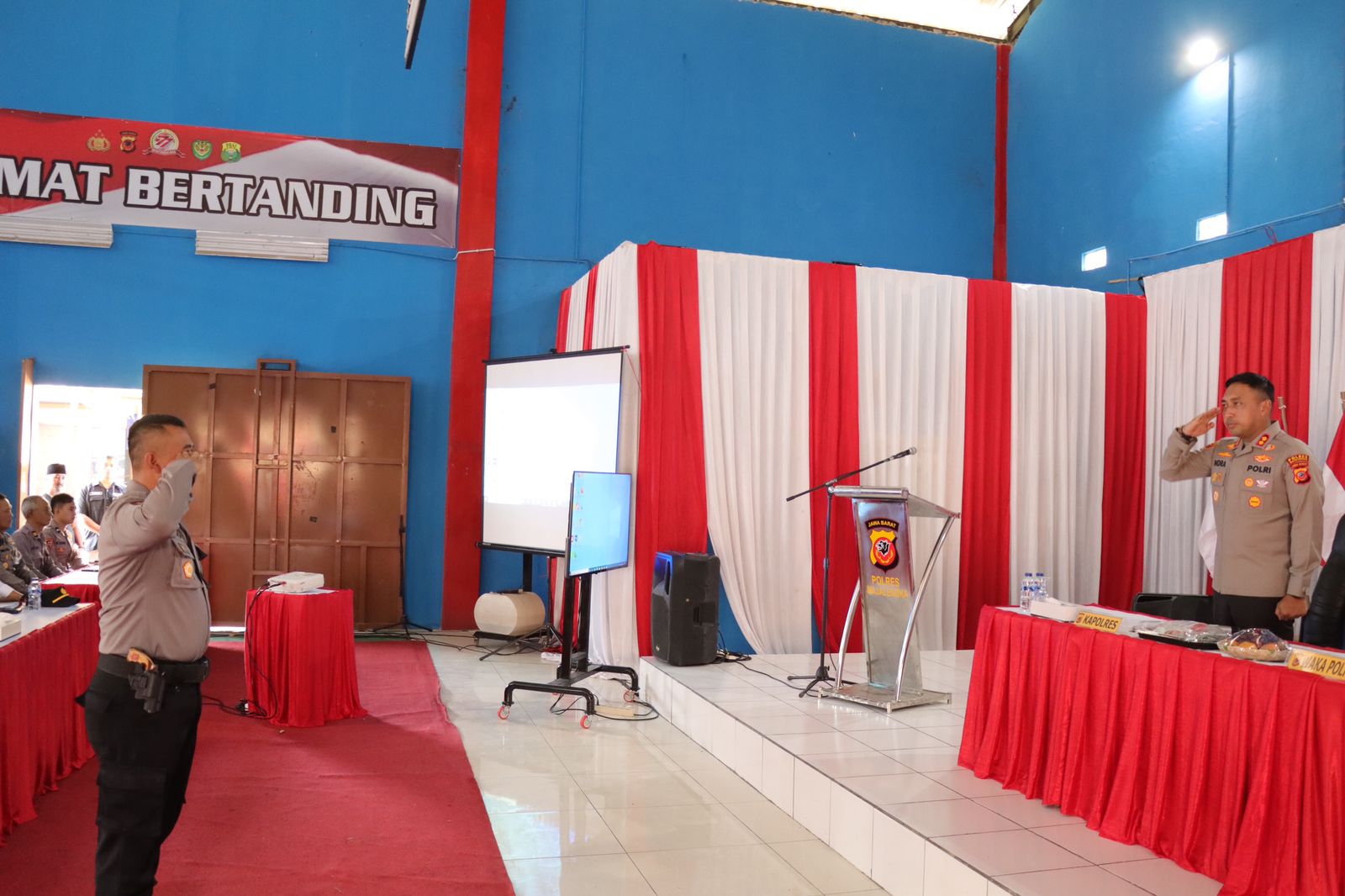 Turut hadir dalam acara tersebut Wakapolres Majalengka Kompol Bayu Purdanto, S.I.K., M.I.K., kabag ops beserta pejabat utama Polres Majalengka, para Kapolsek jajaran Polres Majalengka, para instruktur pelatihan, dan seluruh peserta pelatihan.