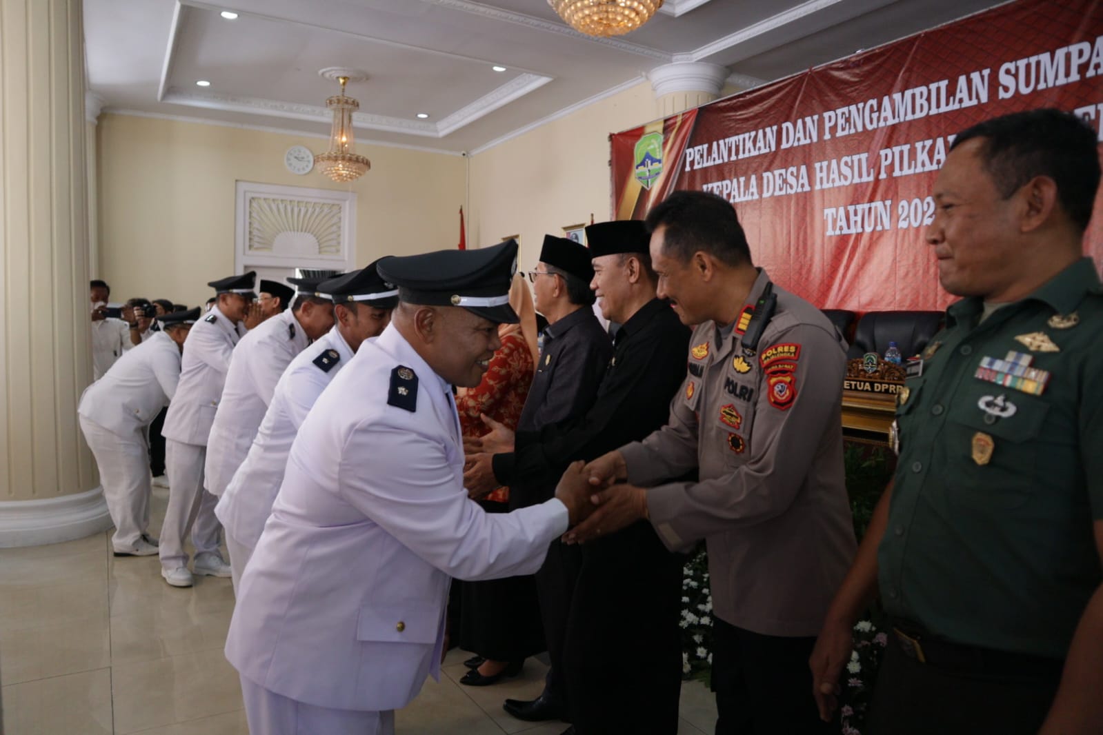 Hadir dalam acara ini, selain Kapolres Majalengka yang diwakili oleh Kabag Ops Polres, juga hadir Wakil Bupati Majalengka, Tarsono D Mardiana, Sekretaris Daerah Kabupaten Majalengka, Drs. H. Eman Suherman, M.M., Ketua DPRD Kabupaten Majalengka, Drs H Edy Annas Djunaedi MM, serta Kepala DPMD Kabupaten Majalengka, Andik Sujarwo, AP., MP. Tidak hanya itu, hadir pula unsur Forkopimda, unsur Organisasi Perangkat Daerah (OPD), Camat, Kepala Desa terpilih, dan wakil masyarakat Kabupaten Majalengka.