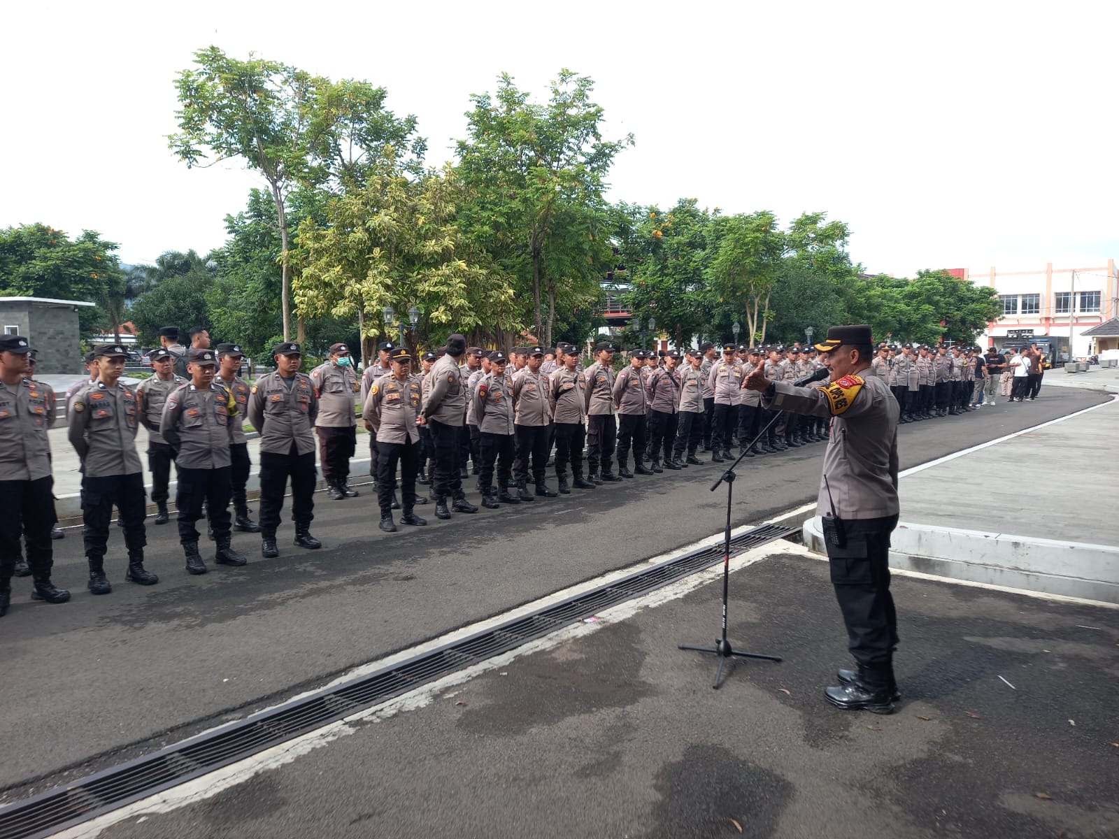 Kapolres menyampaikan agar personel melakukan pengamanan dengan humanis, berikan imbauan untuk massa tetap tertib, jaga kesehatan dan sikap tampang serta kekompakan dan jaga keselamatan.