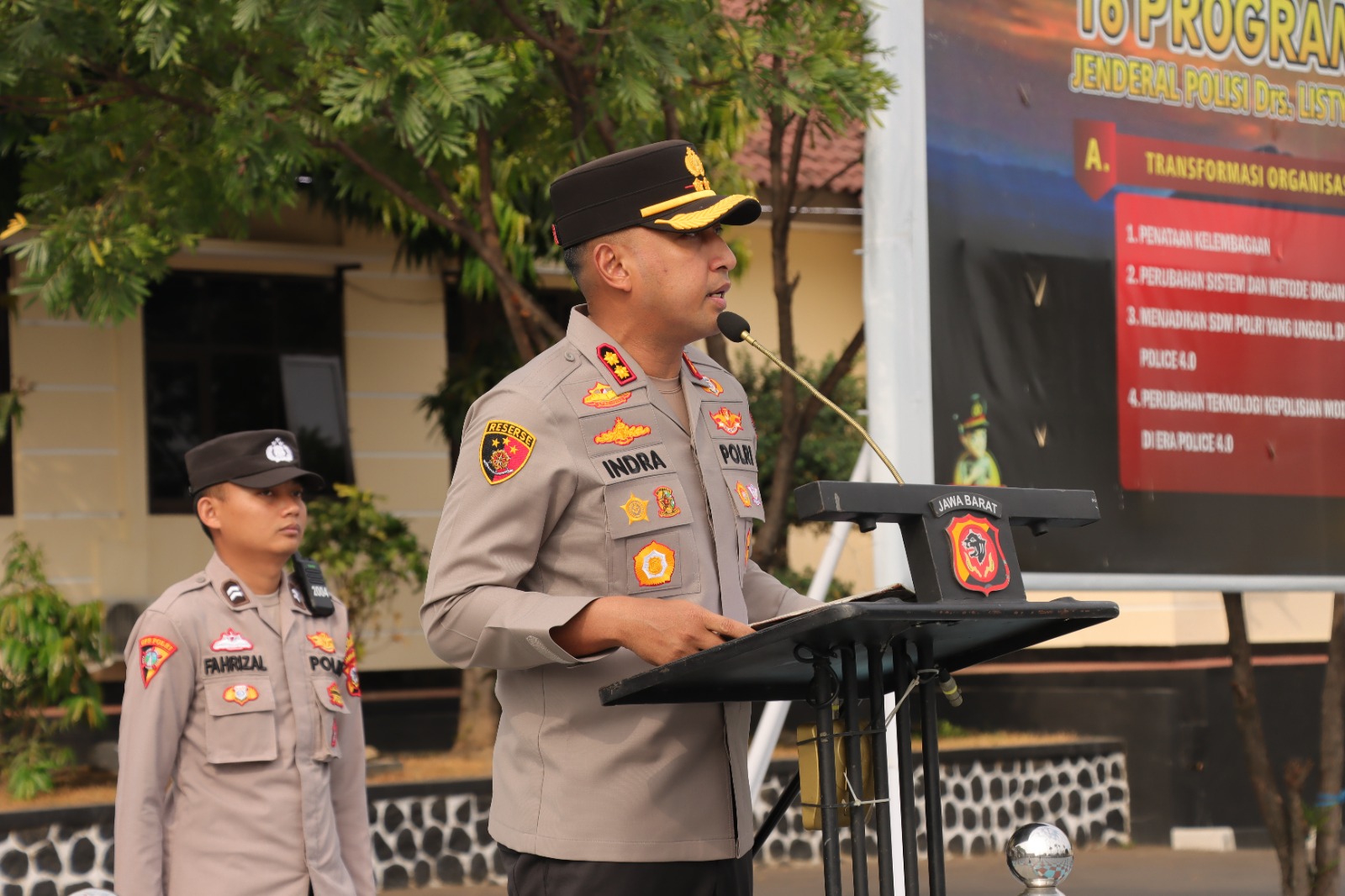 Majalengka – Kapolres Majalengka Polda Jabar, AKBP Indra Novianto, S.I.K., M.Si., CPHR, memberikan arahan penting saat memimpin apel pagi jam Pimpinan di lapangan Apel Polres Majalengka pada Senin (9/10/2023). Hadir dalam kesempatan tersebut Wakapolres Majalengka, Kompol Bayu Purdantono, S.I.K., M.I.K., Pejabat Utama Polres Majalengka, Kapolsek Jajaran Polres Majalengka, Perwira, Anggota, dan ASN Polres Majalengka.