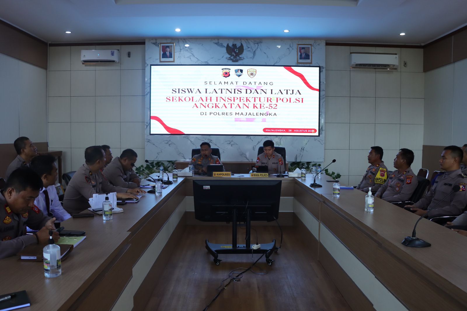 Majalengka,- Semangat kolaborasi dan pembelajaran terus berlanjut di Polres Majalengka, Polda Jabar. Pada kesempatan istimewa ini, Kapolres Majalengka, AKBP Indra Novianto, S.I.K., M.Si, didampingi oleh Wakapolres Majalengka, Kompol Bayu Purdantono, S.I.K., M.I.K, serta para pejabat utama Polres Majalengka, Kapolsek Jatiwangi, dan Kapolsek Rajagaluh, menyambut kedatangan siswa Latihan Kerja (Latja) dari Resimen Rahesa Aditya Diandra (RAD) SIP Angkatan 52 Tahun 2023, di Aula Sindangkasih Polres Majalengka. Senin (28/8/2023).