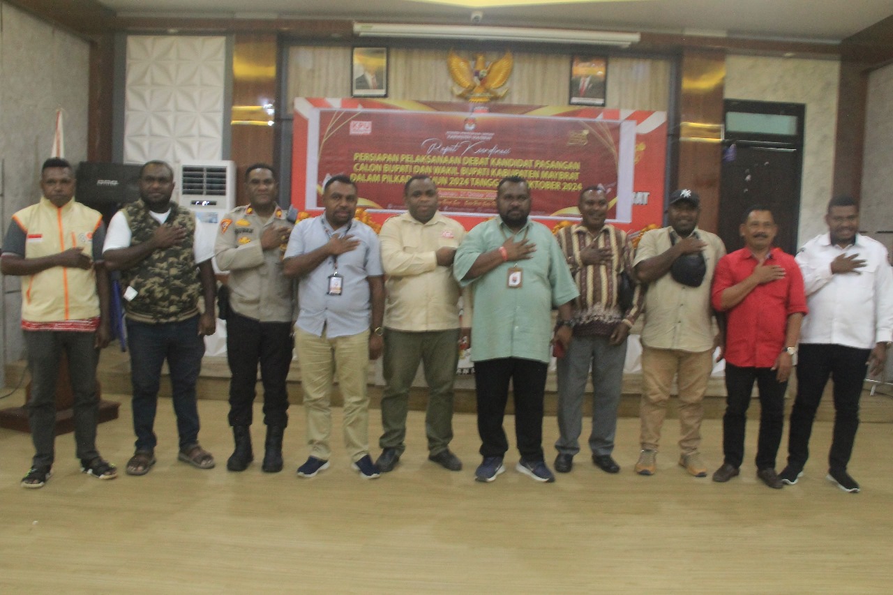 Dalam rapat tersebut, Kapolres bersama dengan pihak KPUD serta instansi terkait membahas langkah-langkah pengamanan untuk memastikan tidak ada gangguan keamanan selama debat berlangsung. Debat kandidat yang akan digelar di Kota Sorong ini menjadi salah satu tahapan penting dalam Pilkada Kabupaten Maybrat 2024, dan perhatian khusus diberikan untuk menjaga situasi tetap terkendali.