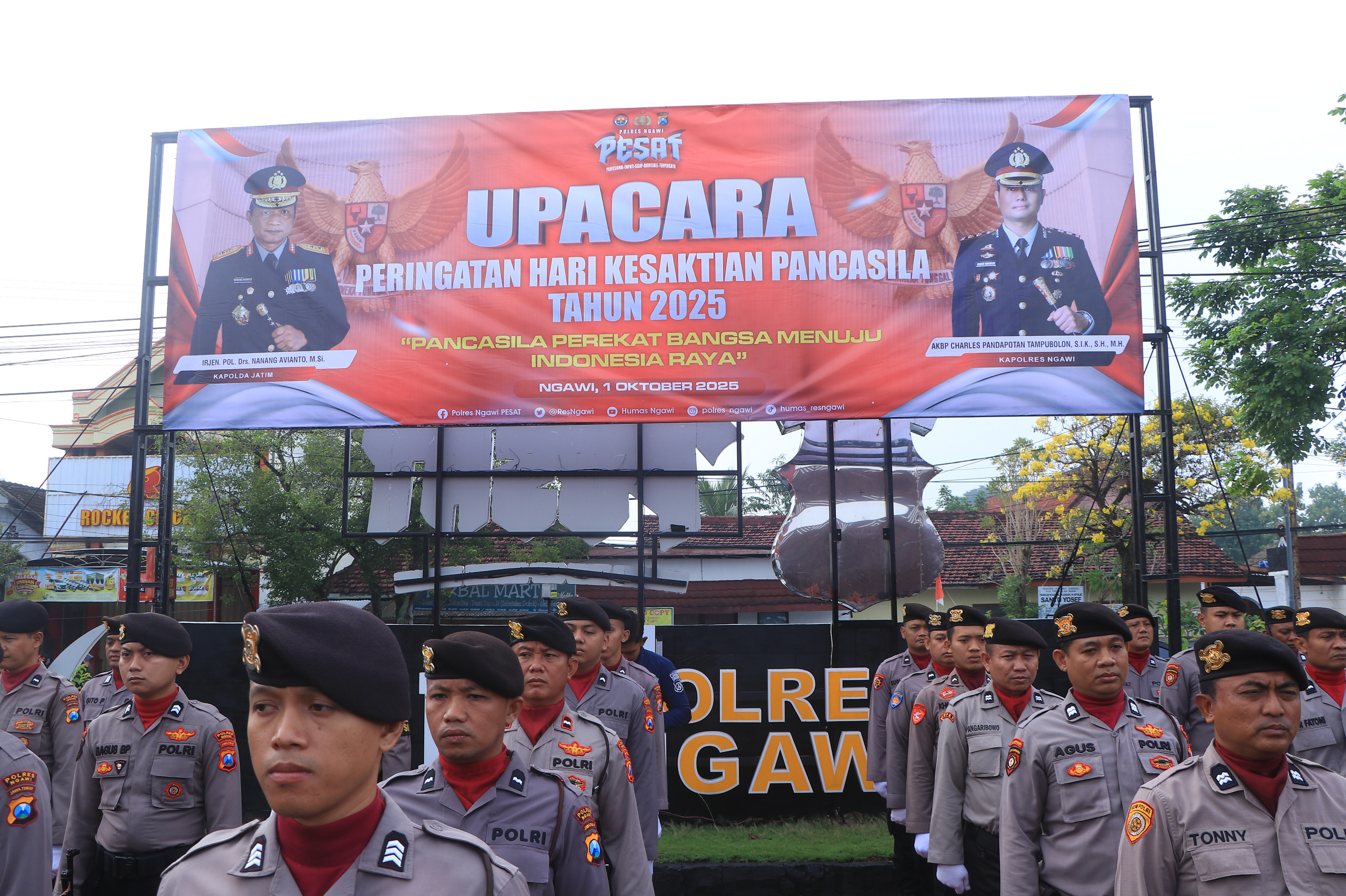Ngawi – Kapolres Ngawi AKBP Charles Pandapotan Tampubolon, S.I.K., S.H., M.H., memimpin upacara Hari Kesaktian Pancasila yang digelar di Lapangan Satya Haprabu Polres Ngawi, pada Rabu (1/10/2025).