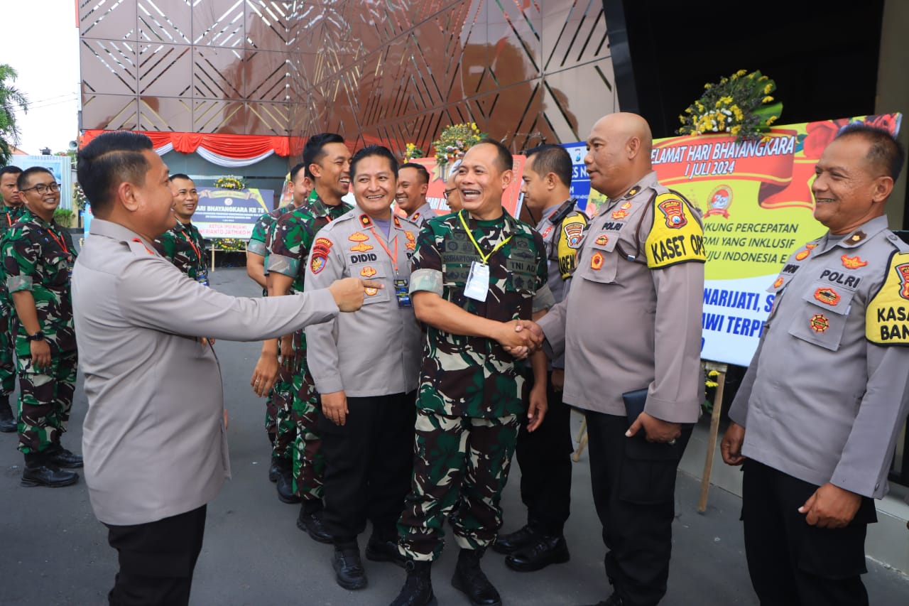 Wujud sinergitas TNI Polri diperlihatkan melalui tayangan videotron profil Polres Ngawi, yang ditampilkan setelah sambutan Kapolres Ngawi AKBP Argowiyono, S.H., S.I.K., M.Si.
