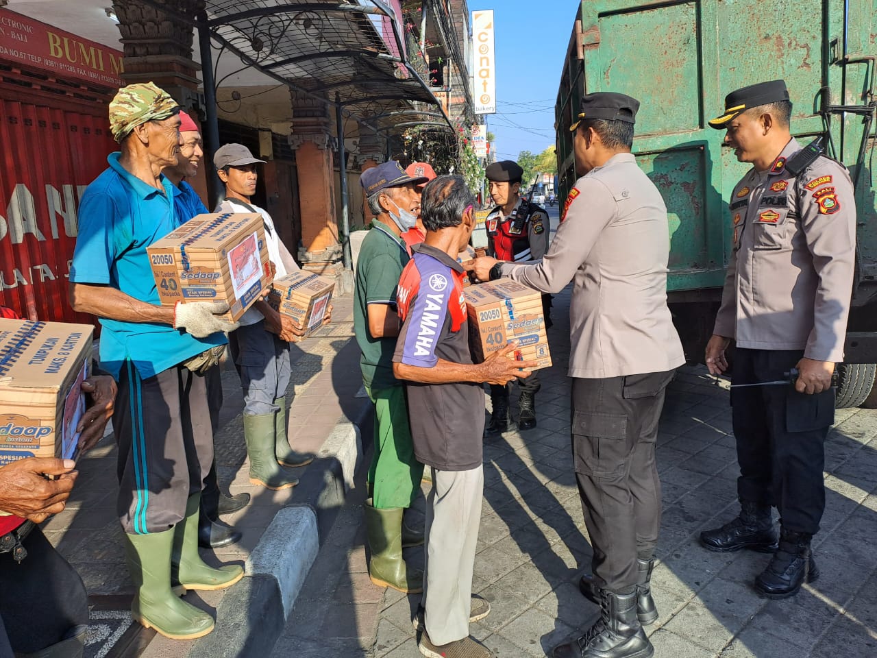 Kapolres Tabanan Berikan Bantuan Sembako Kepada Petugas Angkut Sampah Dan Masyarakat Kurang Mampu