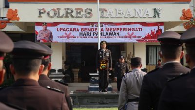 Kapolres Tabanan AKBP Leo Dedy Defretes, S.H., S.I.K., M.H, Jumat ( 10/11/2023 ) menghadiri Upacara Bendera Peringatan Hari Pahlawan Tahun 2023 bertempat di Lapangan Umum Wagimin Tabanan, jln. Merpati, Banjar Jambe, Desa Dajan Peken Kec/Kab. Tabanan.