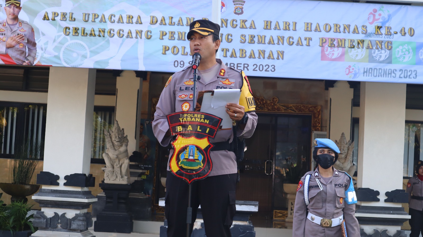Bertempat di Lapangan Apel Mapolres Tabanan berlangsung giat Upacara HAORNAS ( Hari Olahraga Nasional) ke 40. dengan Tema : GELANGGANG SEMANGAT PEMENANG. dipimpin langsung oleh Kapolres Tabanan AKBP Leo Dedy Defretes, S.H., S.I.K., M. H.