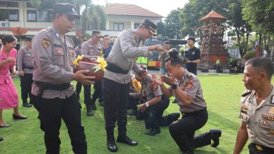 Kapolres Tabanan AKBP Leo Dedy Defretes, S.H., S.I.K., M.H memimpin upacara kenaikan pangkat setingkat lebih tinggi kepada anggota polri polres Tabanan periode 1 Januari 2024 ,Senin ( 1/1/2024 )