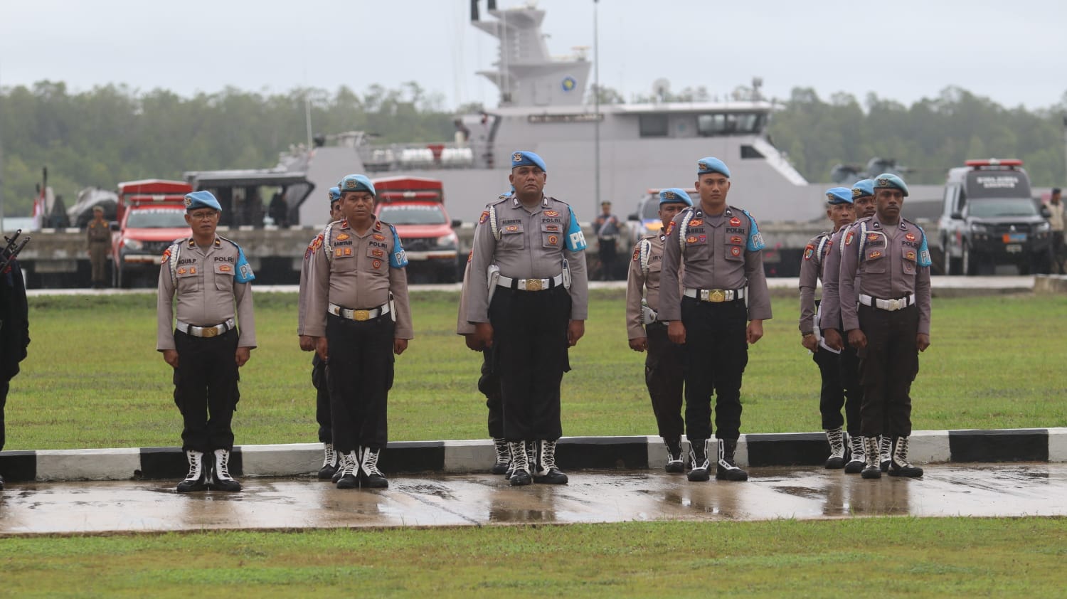 Kapolresta Sorong Kota Kombes Pol Happy Perdana Yudianto S.IK, M.H saat menghadiri langsung apel Operasi Gaktib dan Yustisi Polisi Militer Tahun 2024 yang dilaksanakan di Markas Komando koarmada III Kabupaten Sorong.