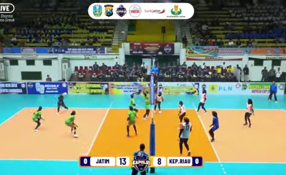 GRESIK, BUSERJATIM. COM GROUP – Pertandingan Voli di ajang olahraga bergengsi Kapolri Cup 2023, Tim Voli Putri Jatim berhasil mengalahkan tim voli putri dari Kepalauan Riau (Kepri) pada seri II yang digelar di GOR Tri Dharma Petrokimia Gresik, Senin ( 14/8).