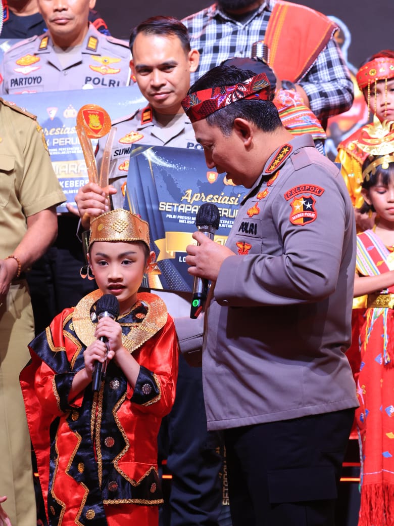 Saat memberikan piala penghargaan, Jenderal Sigit pun menyempatkan menyapa anak-anak pemenang lomba cerpen. Salah satunya adalah Leticia Sara Angeline Harefa yang menjadi juara saty lomba cerpen asal Sumatra Utara.