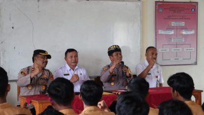 Dalam rangka mencintai NKRI tanpa syarat apapun membelanya apabila terjadi ancaman dari pihak manapun, Kepala Kepolisian Resor Badung AKBP Teguh Priyo Wasono, SIK., didampingi Kapolsek Abiansemal Kompol I Gusti Made Sudarma Putra, S.Sos., S.H., M.A.P., memberikan motivasi di SMA N 1 Abiansemal, Kecamatan Abiansemal, Kabupaten Badung, Bali. Rabu, (13/9) pagi.