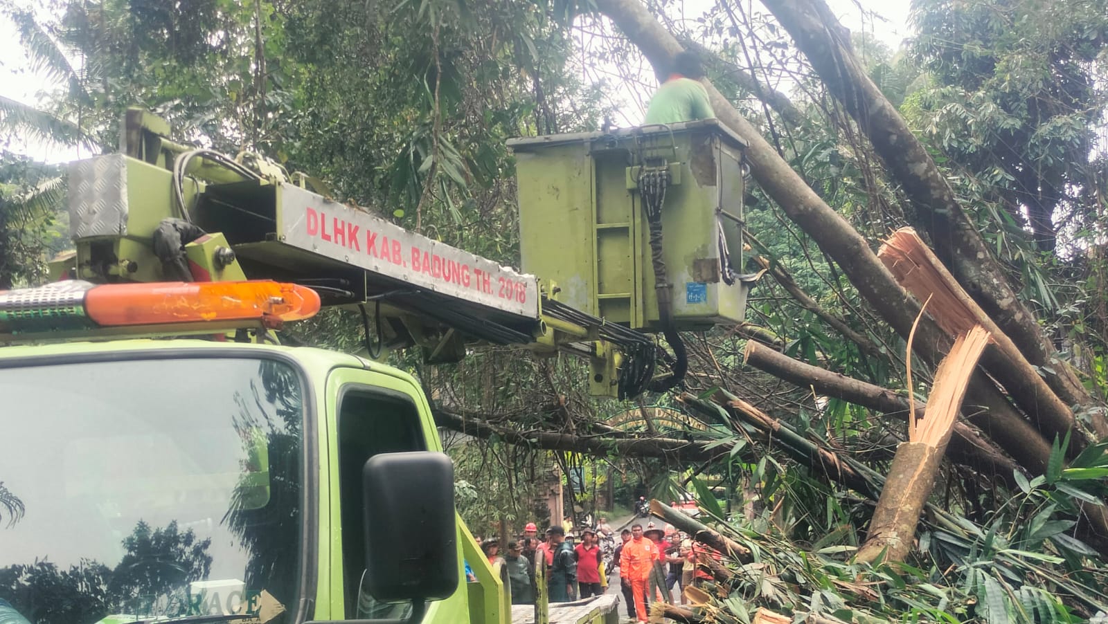 “Dengan menggunakan alat Senso dinas dan Crane Mobil milik DLHK Badung, kita berhasil mengevakuasi pohon tumbang itu, dan langsung membersihkan lokasi tersebut sehingga arus lalin berjalan normal.” tandasnya.
