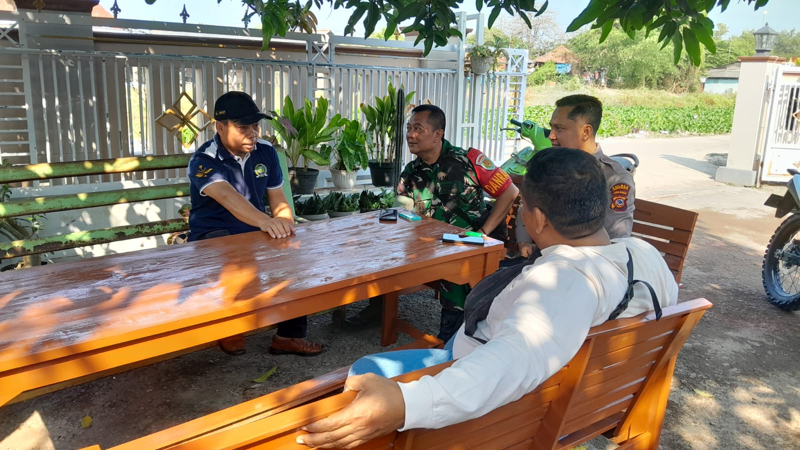 Kapolsek Arahan AKP Sutrisno, S.H., M.H. bersama Danramil Lohbener serta Plt. Camat Arahan menggelar silaturahmi kamtibmas ke kediaman Kuwu Desa Pranggong, Bapak H. Syarifudin, S.H.