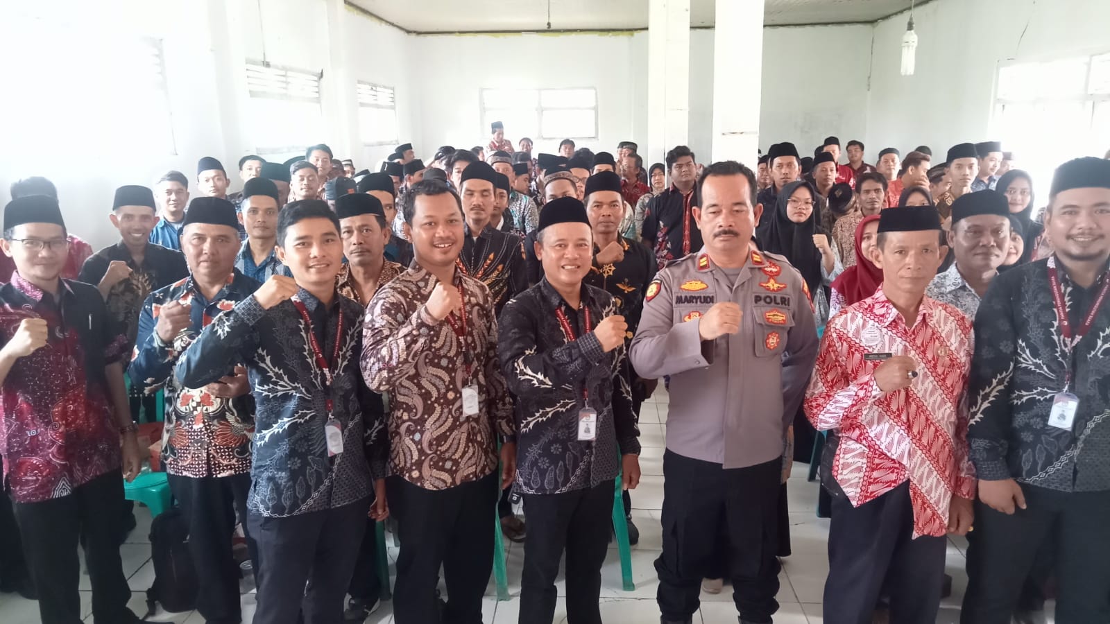 Indramayu –, Kapolsek Bongas jajaran Polres Indramayu Polda Jabar Iptu Maryudi, S.H. bersama sama unsur muspika dan tokoh masyarakat wilayah Kecamatan Bongas bersama sama mendukung pemilu yang damai , Kamis (25/1/2024).
