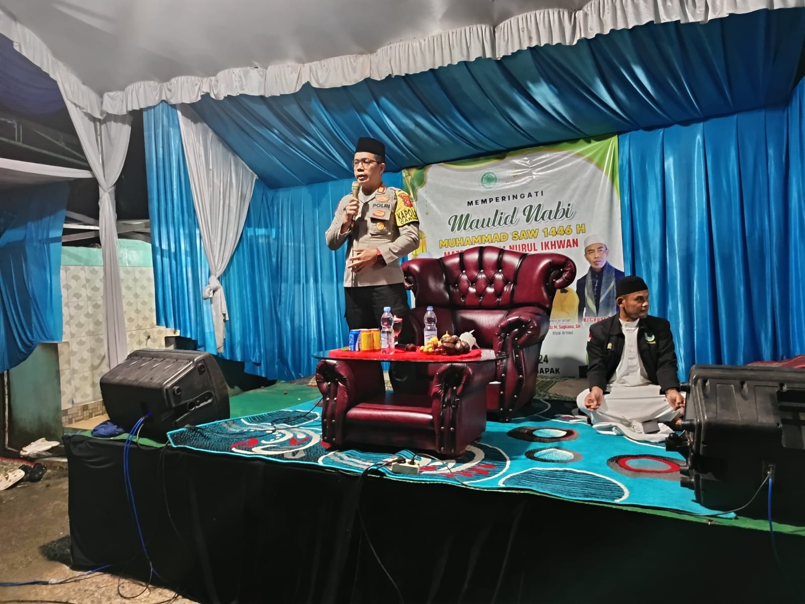 POLRES BOGOR – Kapolsek Caringin Akp Hendra Kurnia,SH,.MM bersama anggota Polsek Caringin menghadiri kegiatan peringatan Maulid Nabi Muhammad SAW 1446 H/2024 Majlis Ta’lim Nurul Ikhwan yang digelar di Kp Cisalopa Desa Pasir Buncir Kecamatan Caringin Kabupaten Bogor Minggu 17N November 2024, pukul 19.30 wib sampai dengan pukul 21.30 WIB. (18/11/2024)