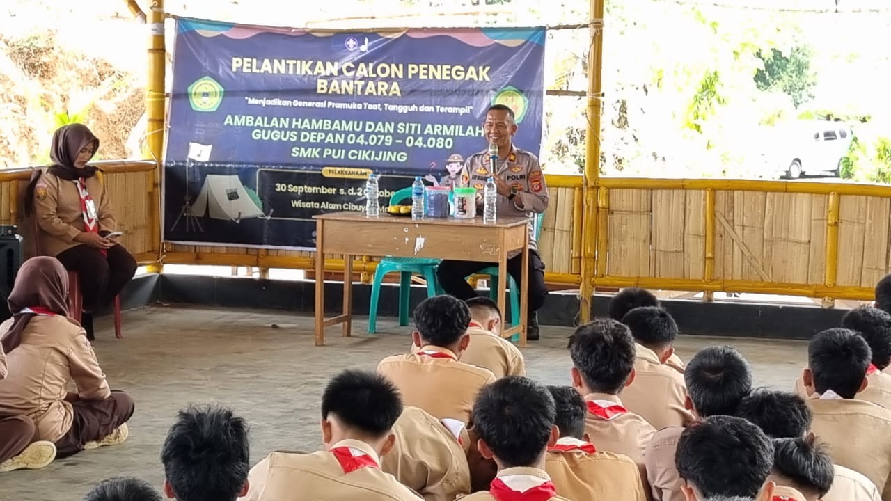 Majalengka – Kapolsek Cikijing Polres Majalengka Polda Jabar AKP Asep Rusmawan, S.H. menghadiri kegiatan Pelantikan sekaligus memberikan materi kepada adik-adik Pramuka calon Penegak Bantara SMK PUI Cikijing yang sedang melaksanakan perkemahan di lingkungan wisata alam Cibuyut Desa Maniis, Kamis (02/10/2025).