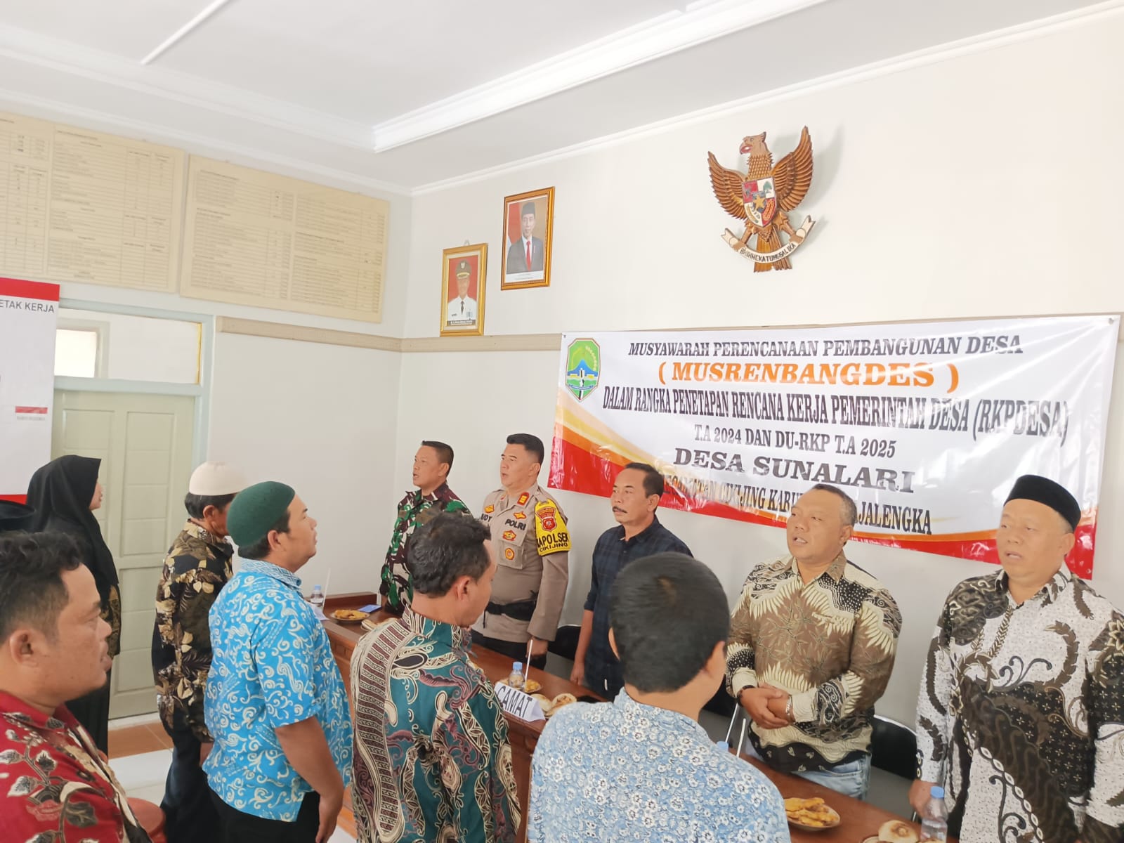 Majalengka – Sesuai arahan dari Kapolres Majalengka Polda Jabar AKBP Indra Novianto,S.I.K.,M.Si., CPHR., melalui Kapolsek Cikijing Polres Majalengka Polda Jabar AKP Rudy Djunardi M, S.H., M.H. beserta anggota menghadiri pelaksanaan Musrenbangdes Tahun Anggaran 2024 dalam rangka pembahasan RKP Desa Tahun 2024 dan rencana daftar usulan (DU) RKP Desa Tahun 2025 di Aula Desa Sunalari, Kecamatan Cikijing, Kabupaten Majalengka, Sabtu (14/10/2023).